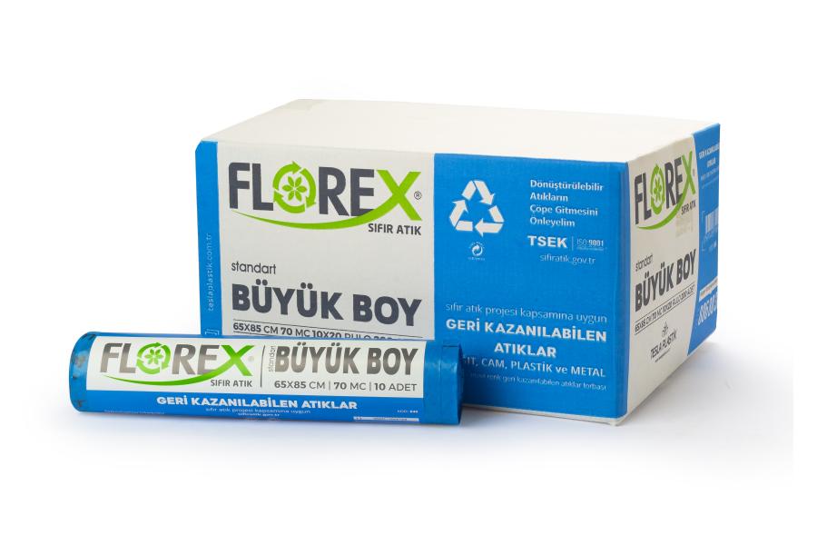 RENK : MAVİ EBAT : 65 x 85 cm / 70 mc RULO : 10 ADET / 350 gr. KOLİ : 20 RULO / 200 ADET / 7 kg. BASKI : GERİ KAZANILABİLEN ATIK TORBASI (KAĞIT – CAM – PLASTİK – METAL)